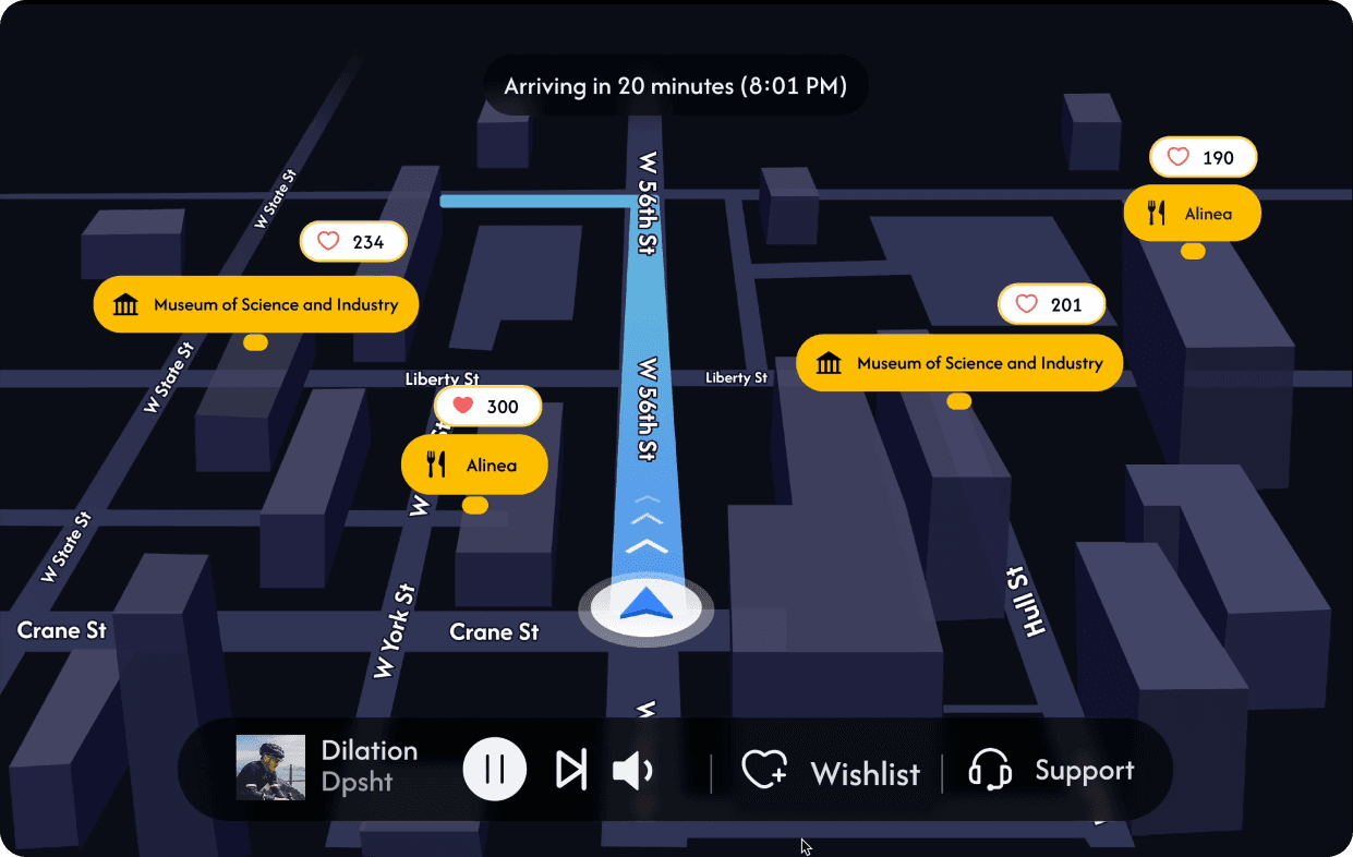 Passengers can explore nearby attractions during their journey and save favorite spots for future visits, creating a personalized sightseeing experience.