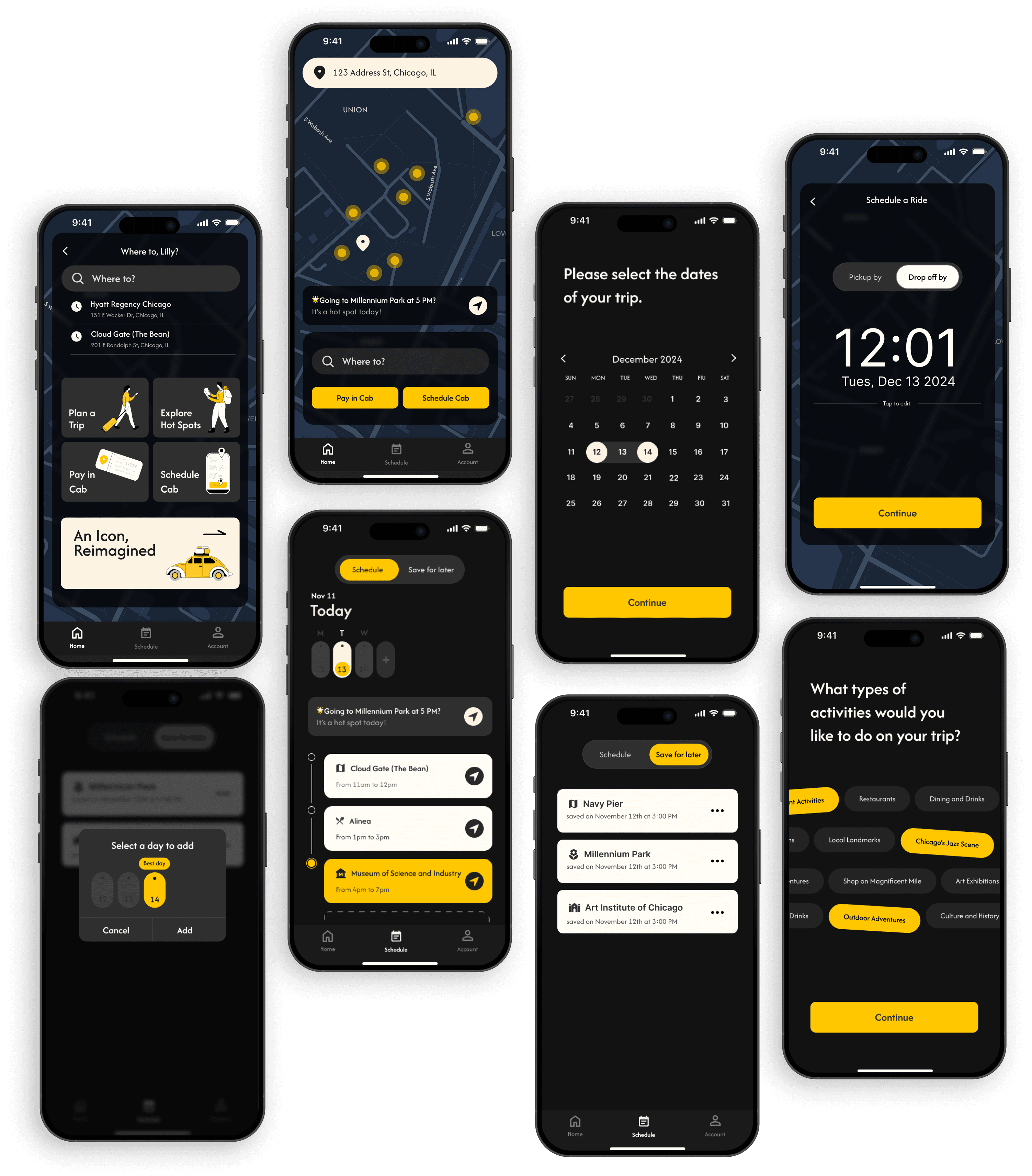 Checker Taxi is being reimagined as a luxury, high-end tourism experience in Chicago. Combining its iconic exterior with modern technology, our service offers customizable, premium rides tailored to travelers seeking exclusivity. With features like a seamless passenger app, in-car digital screens, and personalized itineraries, we aim to differentiate from traditional taxis and ride-shares, redefining city exploration with history, comfort, and innovation.