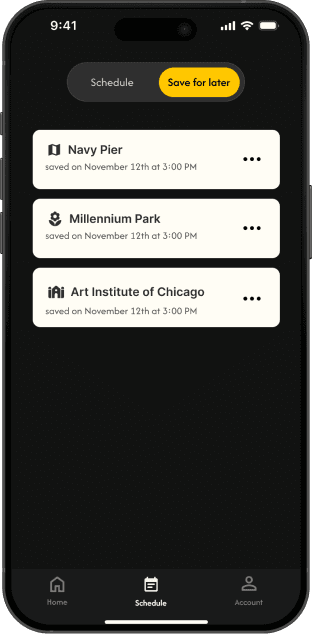 Manage saved spots for later, whether saved from inside the cab or the homepage.